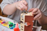 Meine Tochter (12) hat ein H0-Haus zusammengebaut und sich mit ihrem Wassermalkasten ausgetobt. Ich finde, das Erstlingswerk ist relativ gut gelungen.