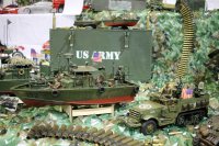 In den weiteren Hallen gab es unzählige, wunderschöne Vitrinen-Modelle aller Art, auch Militaria, ferngesteuerte Autos, Nutzfahrzeuge, Baumaschinen, Flugzeuge, Hubschrauber, Drohnen und Schiffe. Wir durften verschiedene Fahrzeuge ausprobieren. In der LEGO-Halle beluden wir mit einem grossen Bagger aus einem Technic-Bausatz einen schweren Kipper. Vorträge, Workshops, Bastel-Seminare für Kinder und Vorführungen zu verschiedenen Themen gaben grundlegende und weiterführende Informationen. Auf dem Freigelände rasten kleine Flitzer mit Verbrennern auf der Rennstrecke umher. Der Duft von Nitromethan in der Nase liess mich an den Modellbau der 80er denken. In einem grossen Wasserbecken zeigten Schiffsbauer ihr Können und gingen mit einem U-Boot-Modell aus dem zweiten Weltkrieg auf Feindfahrt. Ein grosser Modell-Hubschrauber mit Gasturbine machte zwar höllischen Lärm, aber auch einen guten Eindruck. Für die Freunde moderner Flugtechnik gab es in einer abgedunkelten Halle Drohnenrennen!