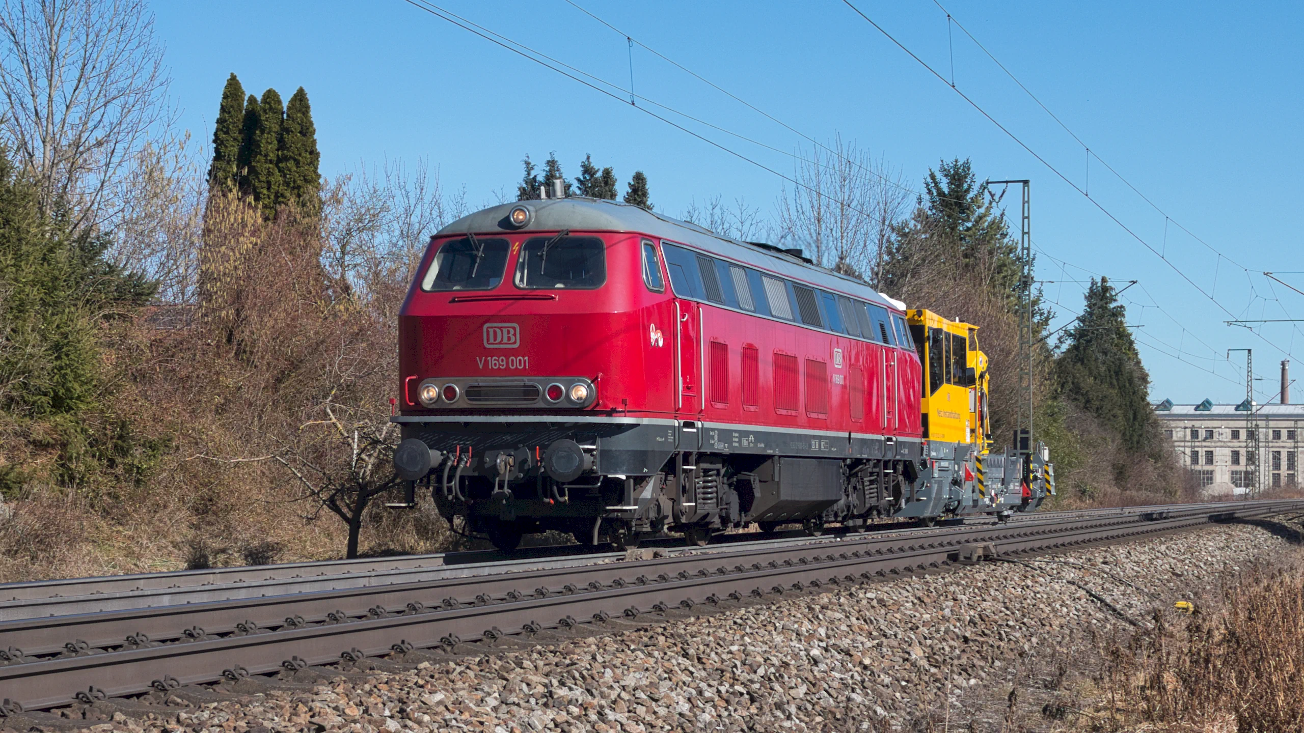 Ich konnte die besondere Diesellokomotive am sonnigen 27. Februar 2026 in Freilassing fotografieren. Sie zog einen Rottenkraftwagen der DB Netz Instandsetzung des Herstellers ROBEL aus Freilassing.
