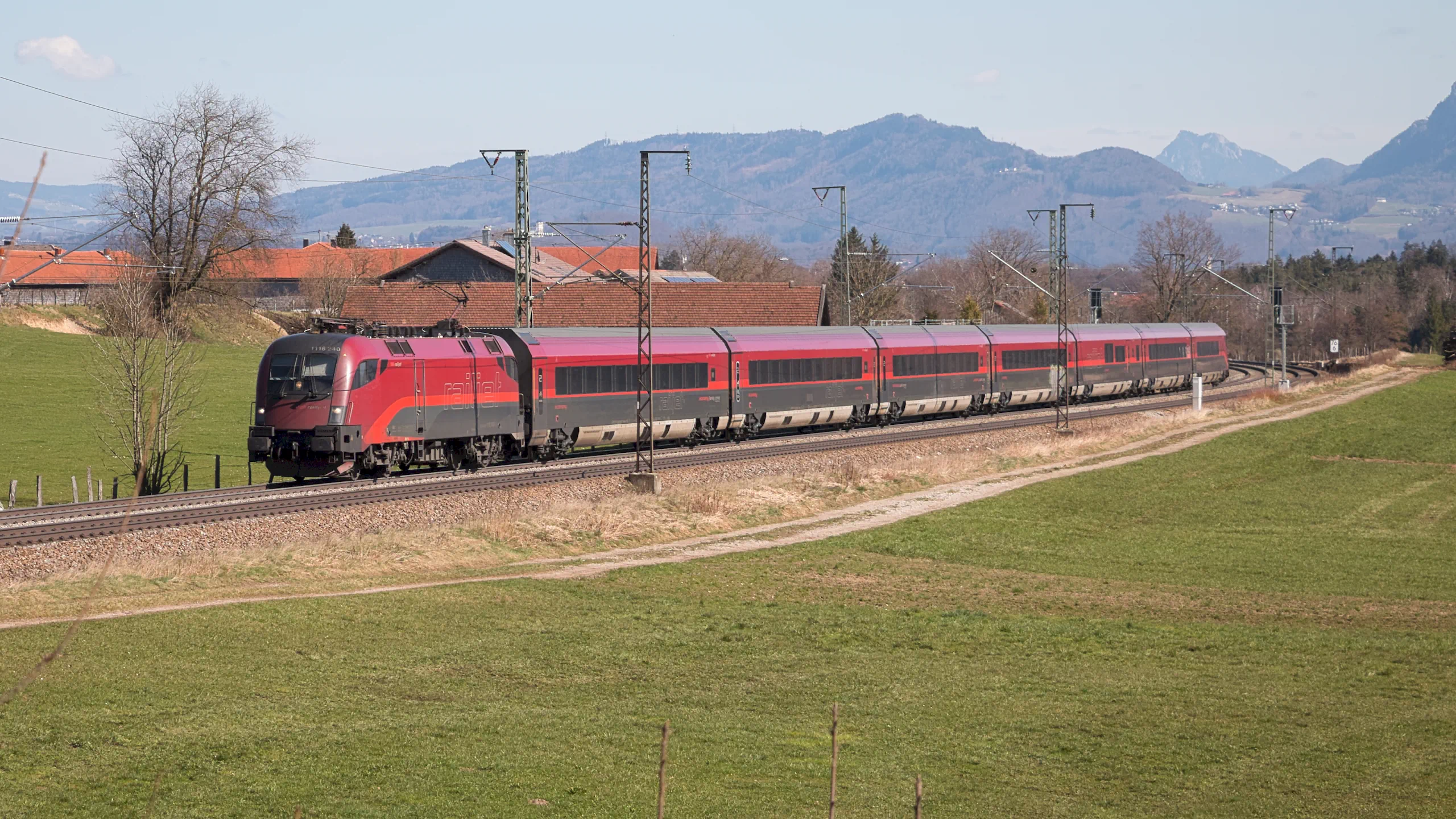 ÖBB 1116 240 mit einem Railjet bei Niederstraß, am 13. März 2026.